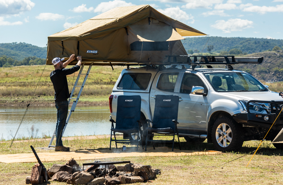 Kings Grand Tourer MkIII Aluminium Rooftop Tent + Grand Tourer RTT - Pair of Alloy Cross Bars 2x Kings Premium Sleeping bag - Left and Right Zipper